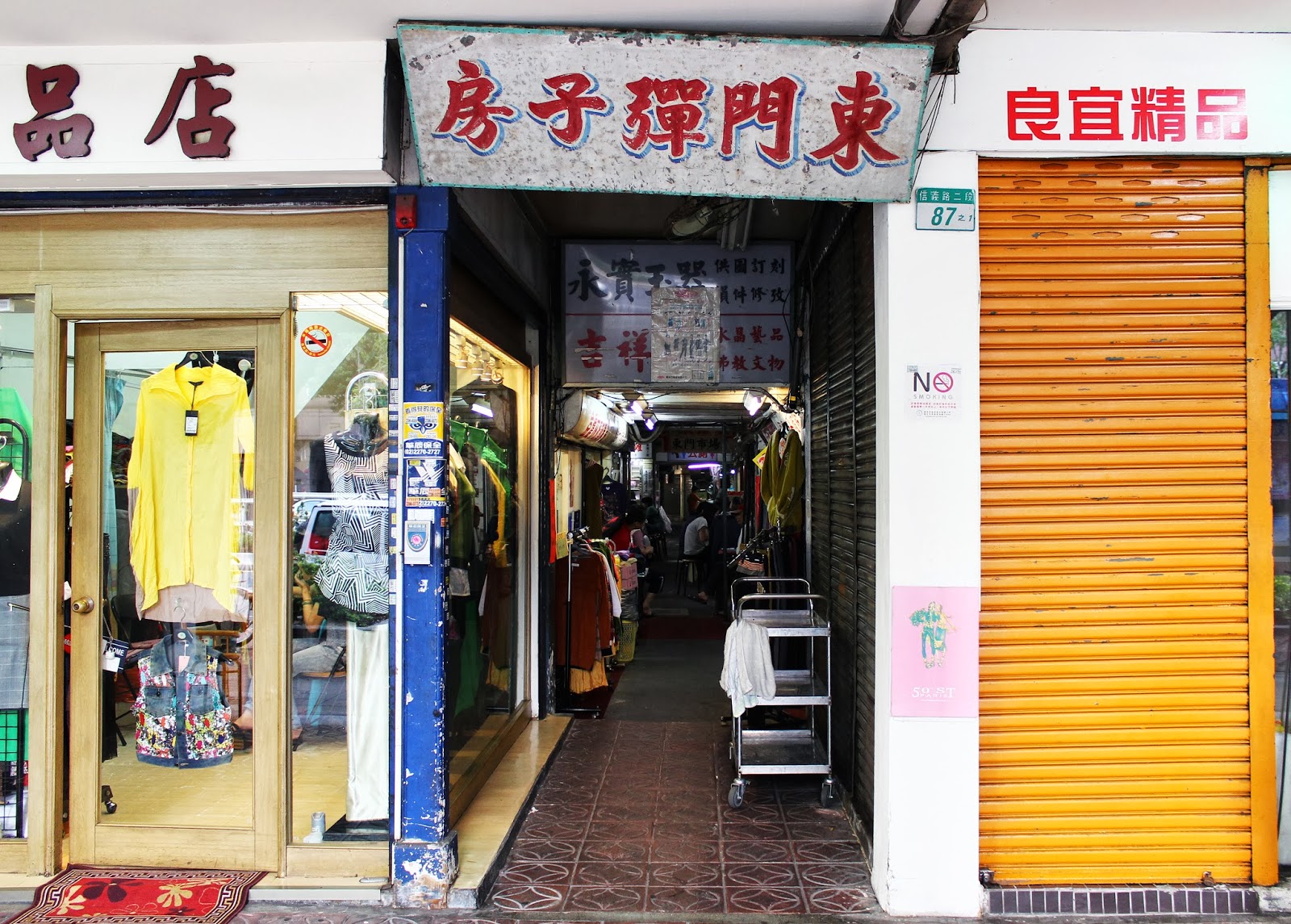 從信義路二段87號這條小巷拐進來,就可以看到知名的羅媽媽米粉湯。請認明「東門彈子房」的招牌