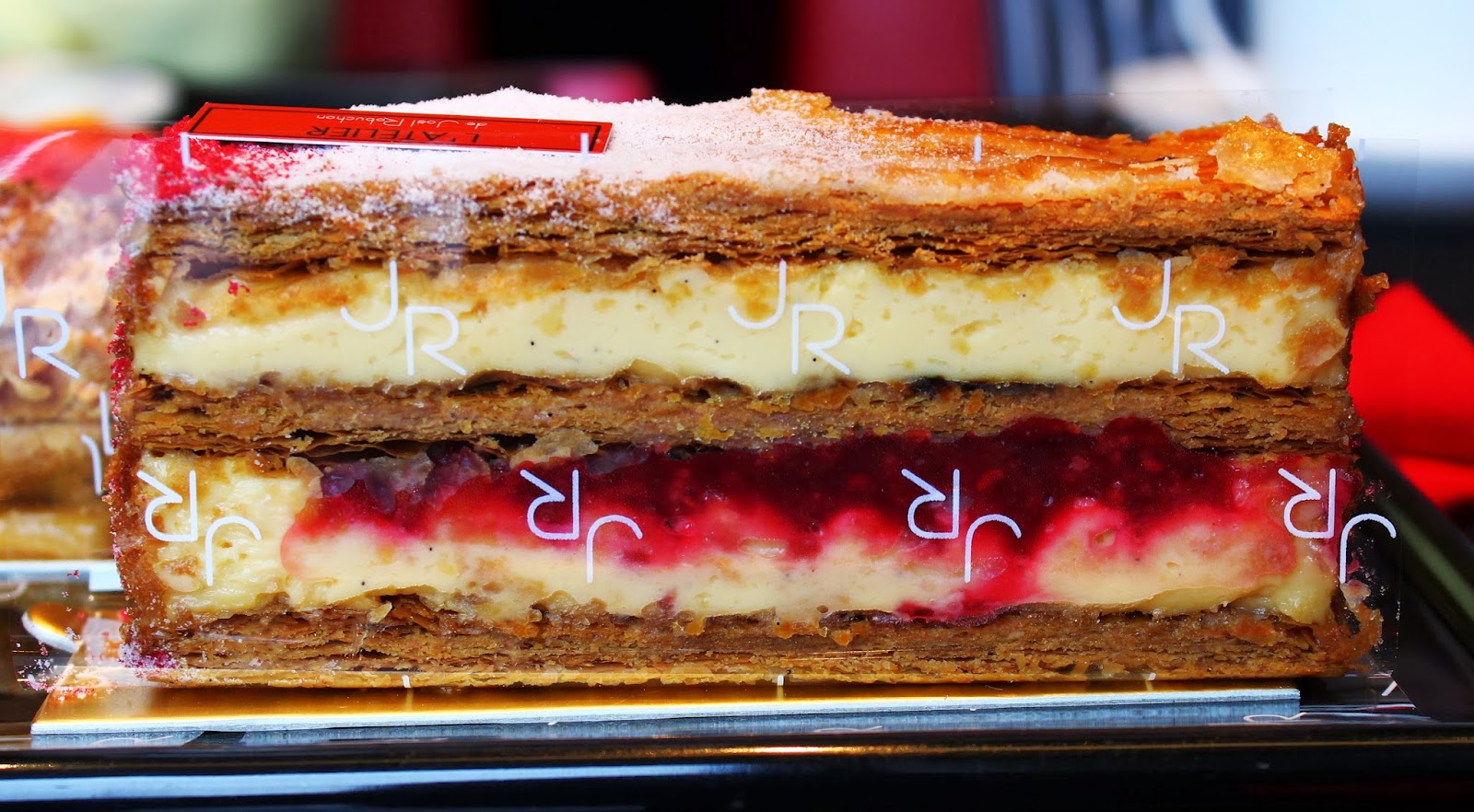 | 香草覆盆子千層派,濃郁滑順的香草卡士達醬搭配微酸的覆盆子醬,又是一道酸甜均衡的甜點 |