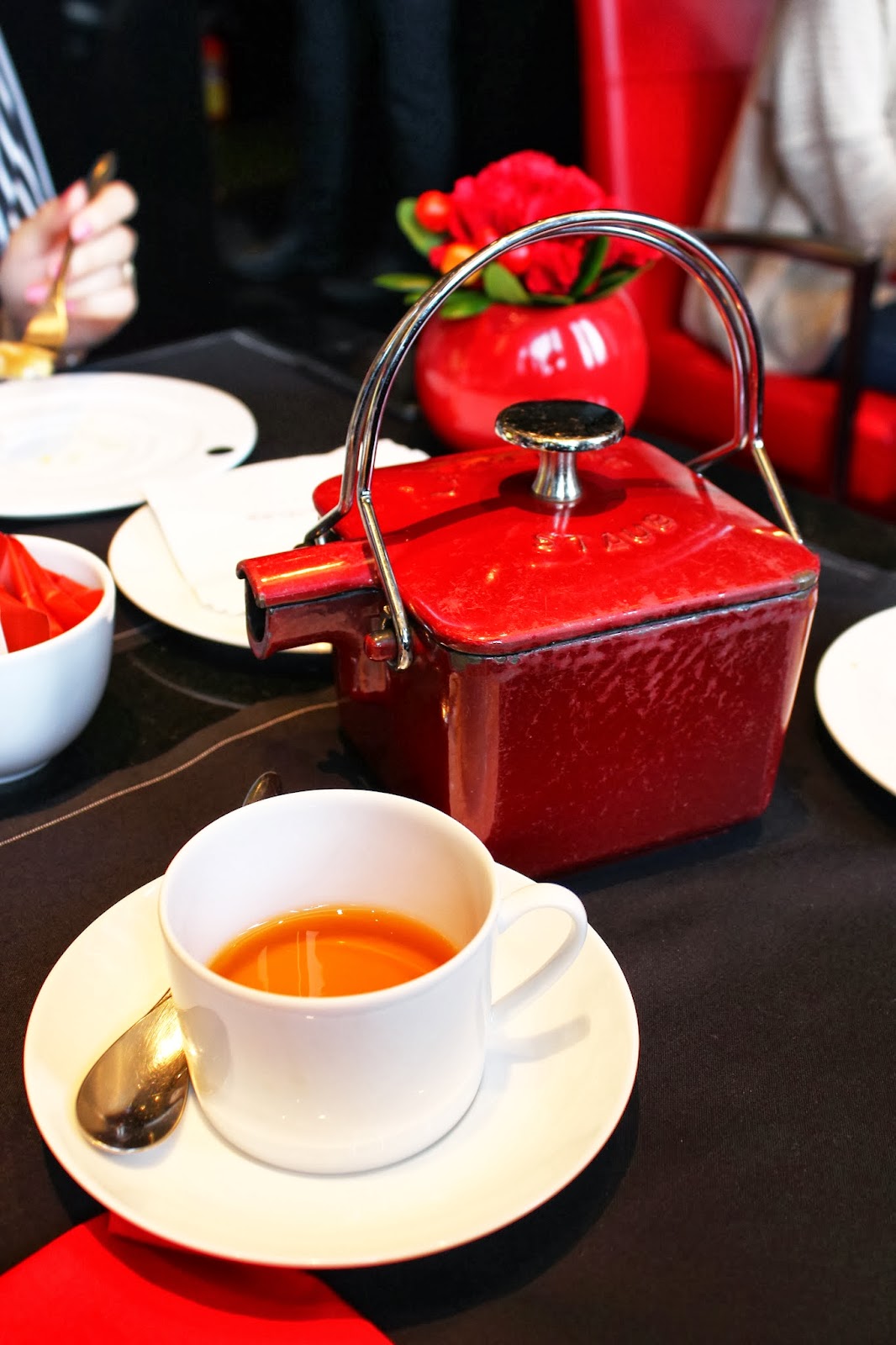 | Robuchon除了裝潢是以紅、黑兩色為主調,連同茶具也是一致色調 |